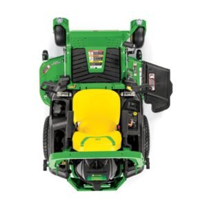 • Comfort features on this riding mower include a 15 in. high-back seat, ergonomic steering wheel, rubber isolator and easy step-through design